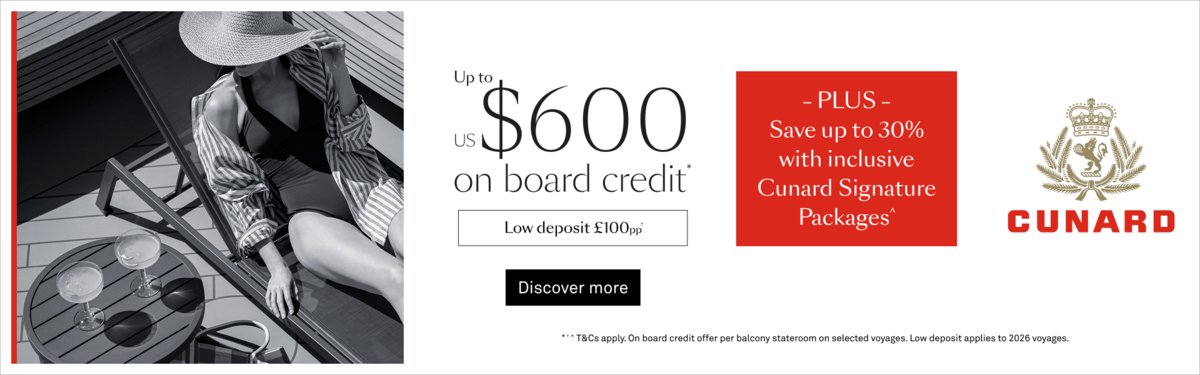 A Cunard World Voyage is the ultimate seafaring adventure. Multiple ports in multiple continents, 100 nights or more on board your ship. The chance to explore all corners of the world in a single voyage. It’s the closest you’ll get to living like a modern–day nomad (just with a Cunard Queen as your home–from–home). With Cunard, life doesn’t stop just because you’re at sea. But it does get a whole lot better.