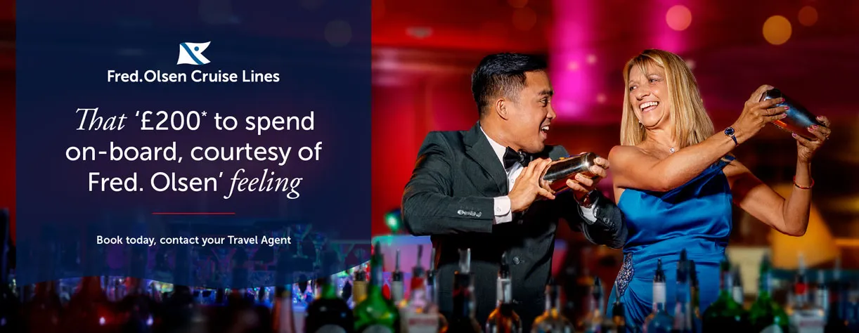Enjoy up to £200 On Board Credit per cabin to spend however you wish on select sailings with Fred. Olsen. Pamper yourself with a spa treatment, discover delectable dishes at the speciality restaurant, or enjoy an evening cocktail. How ever you choose to spend it, your On Board Credit is a sure way to add that extra touch of magic to your voyage.
