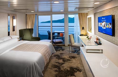 Stateroom Features Veranda Two lower beds convertible to one Queen size bed Sitting area with 40” flat-screen TV Mini-bar Thermostat-controlled air conditioner Direct-dial telephone with voice mail Writing desk In-room safe Hand-held hairdryer USB ports under bedside reading lamps Stateroom: 175 sq. ft. (16.3 sq. m.)