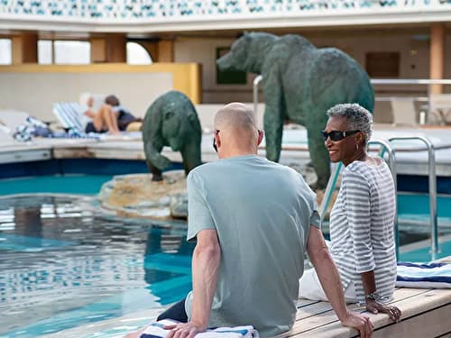 Our flagship Bolette is everything that our loyal guests have come to expect from a Fred. Olsen ship. Proudly bearing the name of Fred. Olsen Jr.’s great-great-grandmother, as many other Olsen vessels have over the years, she exudes classic, elegant style in her exterior and interior design, features spacious and comfortable public areas, and has all the facilities and special touches you need for a relaxing and enjoyable holiday. While she’s one of the largest ships, by overall size, in our fleet, Bolette has capacity for less than 1,400 guests. So, in keeping with our smaller-ship ethos, you’ll find that you’re not overcrowded on board, Show lessand have plenty of space in which to indulge yourself in the stylish dining venues, enjoy a glass of your favourite tipple and fantastic entertainment at the bars, lounges and theatres, and while away the hours by the all-season pool. And of course, with our friendly staff providing our typical level of personal, attentive service, there’s an intimate feel to the on board experience too.