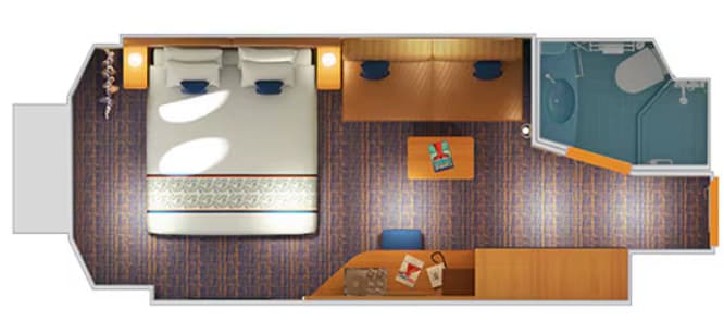 Two twin beds (convert to king). Desk and seat. Full bathroom with shower. Ample closet space. Dedicated room steward Soft, cozy linens (Carnival Comfort Collection) In-room safe for valuables Plenty of closet and drawer space Television Stateroom climate control Bathrobes upon request