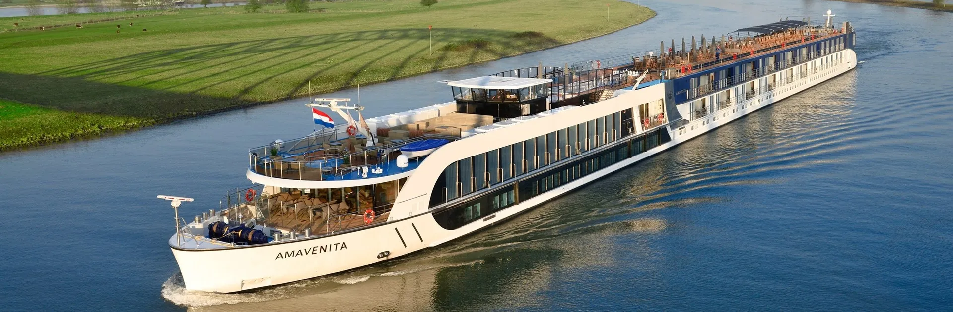 Reminiscent of a classic ocean yacht, the AmaVenita glides regally down Europe’s great rivers. Her tastefully refined staterooms are appointed with granite desks, and most with refreshing twin-balcony staterooms, so you can enjoy fresh air and scenic views, as well as marble bathrooms with soothing multi-jet showerheads. The inviting Main Restaurant accommodates both those wishing to socialize and those seeking a more intimate meal. Dedicated wine tables for groups feature a veritable rainbow of patterns reflecting the diverse cruisers and cultures you’ll be introduced to on your cruise. In addition to AmaWaterways’ signature exquisite, locally sourced cuisine, you’ll find a massage and hair salon, gift shop, specialty coffee station, walking track, heated pool, fitness room and, of course, a fleet of complimentary bikes to use ashore. And each night, the stunning Main Lounge provides an exhilarating backdrop for enjoying performances by local entertainers.