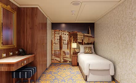 It’s a long way from Venice to NYC, but Carnival Venezia thinks the two could be next-door neighbors. This ship sails from its Big Apple homeport, year-round, starting in spring 2023! And what can NYC find in this ship? Well, there’s more than a little Italy in this one — that’s why we’re calling this new type of cruising Fun Italian Style™. It starts with onboard flavor and flair in spots like Piazza San Marco (the grand, elegant atrium), the three-course Marco Polo Restaurant complete with Italian sculptures and authentic dishes featured nightly, Teatro Rosso and its marbled columns, red velvety seats and fun Playlist Productions™ up on stage. Terrazza staterooms are a whole new way to stay in style and comfort, all in a great location close to exclusive amenities. Plus we’ll be announcing more exciting new stuff in the future! There’s also a lot of the classic Carnival fun that repeat cruisers ( hey there!) know and love. Cruise food done deliciously comes from spots like Bonsai Sushi™, Fahrenheit 555 Steakhouse™, Lido Marketplace, and Bonsai Teppanyaki™. Places to gather and celebrate life, vacation or whatever include Piano Bar 88, Serenity Bar and Heroes Tribute™ Bar. Or celebrate relaxation at Cloud 9 Spa™ and Serenity Adult-Only Retreat™. For the kids, there’s spaces made just for their age like Camp Ocean™, Circle “C”® and Club O2®. And outdoors, get ready for a very splashy WaterWorks™, SportSquare™ featuring a ropes course, jogging track, mini golf and outdoor fitness center. So as we were saying… hey, we’re cruising here! Carnival Venezia and all this Fun Italian Style sets sail from NYC next spring. Andiamo!