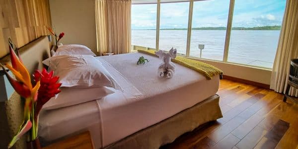 The Delfin III is one of the newest luxury vessels cruising Peru’s Amazon. On board this 22 all-suite ship, the rainforest is never far away, yet 5-star comforts and conveniences abound on board. Explore one of the wildest and bio-diverse places on earth while enjoying luxury aboard this intimate yet spacious vessel. Spend time relaxing on the open-air sun deck, take a dip in the refreshing plunge pool, or take a cooking class in the indoor lounge. Taste a Pisco sour at the ship’s bar or pamper yourself with a spa treatment of Amazon elixirs. It truly is luxury at its finest. Experience famed Peruvian cuisine as well as conventional favorites prepared by an expert culinary staff using locally sourced ingredients. Indulge in exceptional menus featuring roasted meats, grilled fish, savory vegetables, sun-ripened tropical fruits, decadent desserts, and free-flowing wine during dinner. The Delfin III’s expert Naturalists guide you to explore the small Amazon tributaries, flooded forests, and jungle villages along the river, and introduce you to the locals who call the Amazon home. Enjoy cultural performances on board, as well as Naturalist presentations about the diverse ecosystem. Off the ship, you’ll visit the Lost City of Machu Picchu, the Sacred Valley, Cusco, and Lima. Please note: For the few rivers not sailed by Avalon Suite Ships®, we carefully select only the best river ships that meet our high standard of excellence in quality, comfort, and amenities. Avalon personally charters the Delfin III to deliver the exceptional experience cruisers have come to expect from Avalon Waterways.
