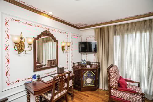 The ship’s spacious, high-ceilinged suites are a serene sanctuary, with beautiful hand-painted murals and all the comforts of a five-star hotel. All suites have a cosy sitting area and a French balcony with floor-to-ceiling glass doors. A bed dressed in soft linens, with a choice of pillows. Your roomy bathroom has a rain shower, comfy robes and slippers, and spa-quality bath products. Other high-end amenities include a generous amount of closet space, under-bed storage, a flat-screen television with a wide selection of on-demand movies, individual climate control, bottled water replenished daily, fresh fruit and flowers upon arrival, an iPhone docking station with alarm clock, makeup mirrors, and universal electrical plugs.