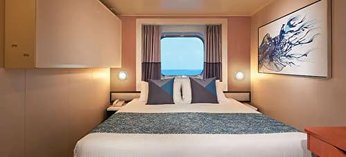 You can comfortably fit up to four guests in these staterooms, making them perfect for families. You’ll enjoy an amazing view from the big picture window. Two lower beds convert into a queen-size bed and additional bedding to accommodate up to two more guests. Of course, you’ll have room service and many other amenities. Plus some can connect for even more space.