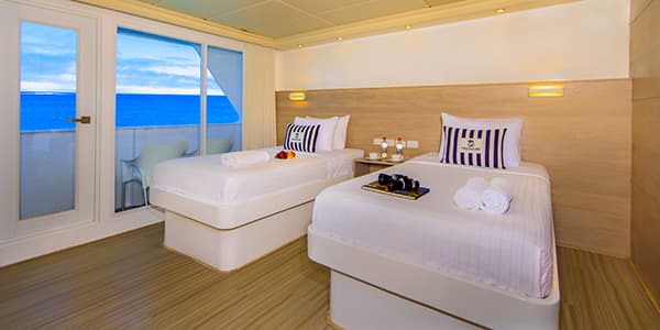 Exploring the Galápagos Islands on board the 9-suite Treasure of Galápagos goes beyond traditional cruising and allows you a truly intimate experience with a maximum of 16 guests. Chartered for Avalon guests, the Treasure of Galápagos features spacious suites with balconies and takes you around the archipelago to explore the natural wonders of this region in privacy and comfort. Completely refurbished recently, the Treasure of Galápagos is designed to surpass luxurious standards with an elegant yet relaxed atmosphere, allowing guests to enjoy all of the treasures of the Galápagos Islands! From penguins and flamingos sharing the same beach, ancient tortoises and iguanas that swim, colorful birdlife that forgot how to fly, and the diverse marine world teeming with life, these dramatic volcanic islands truly are “a laboratory of evolution.” Delve into this unique world with the Treasure of Galápagos’ crew and expert Naturalist, who share their passion for nature and conservation of this mysterious part of the world. Your Galápagos cruise includes Naturalist-guided shore excursions, lectures, and exploration of the marine reserve by strolling, hiking, and snorkeling. At day’s end, you’ll return to the relaxed luxury of your ship. Please note: For the few rivers not sailed by Avalon Suite Ships®, we carefully select only the best river ships that meet our high standard of excellence in quality, comfort, and amenities. Avalon personally charters the Treasure of Galápagos to deliver the exceptional experience cruisers have come to expect from Avalon Waterways.